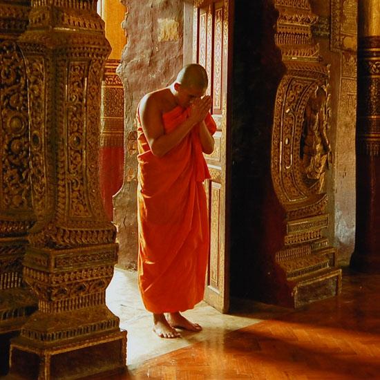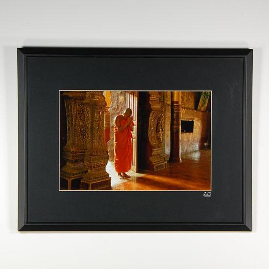 22.5" x 17.5" by Popular Thai Photographer W. Muksab. Limited ddition; full color monk praying at temple entry; Chiang Mai Thailand