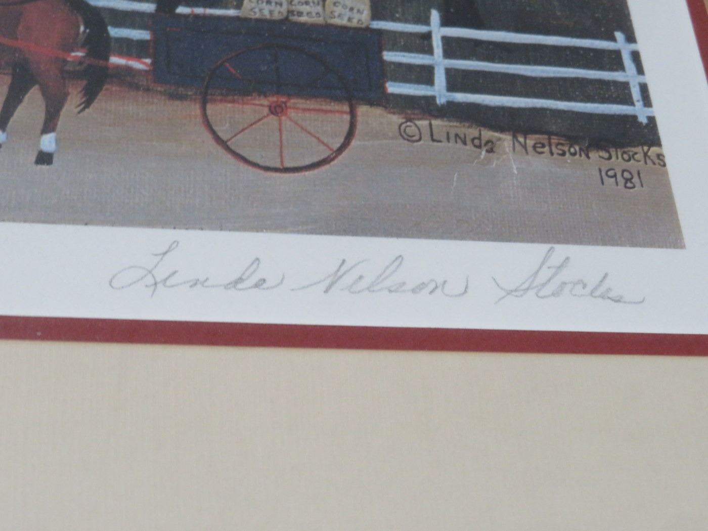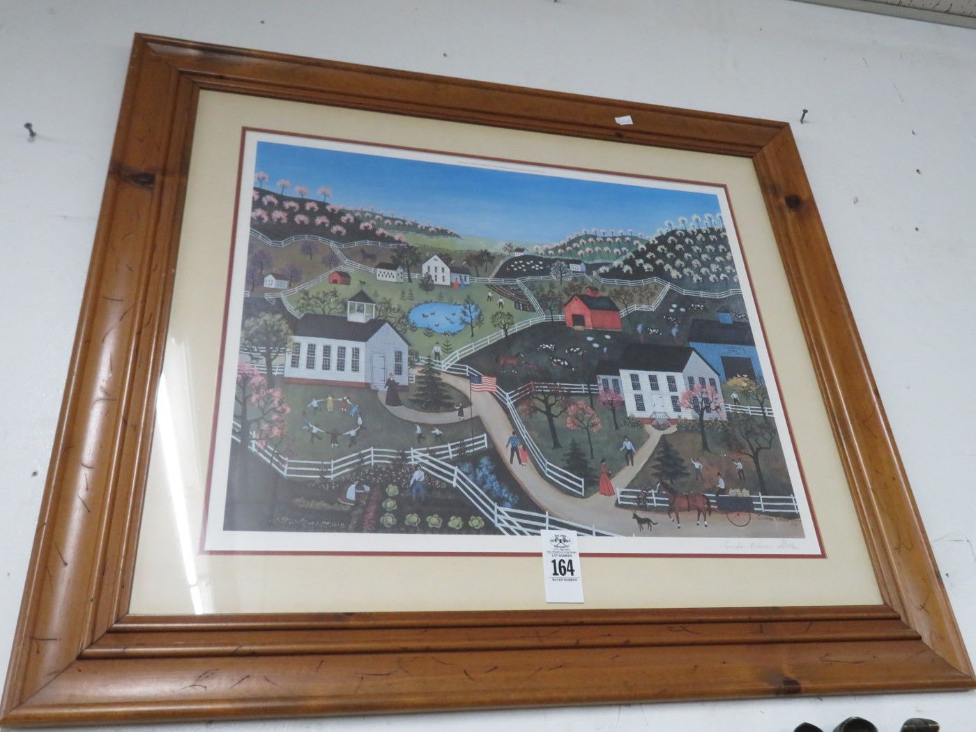 Framed Colorful Country Town Scene Signed Stocks - 30 x 36