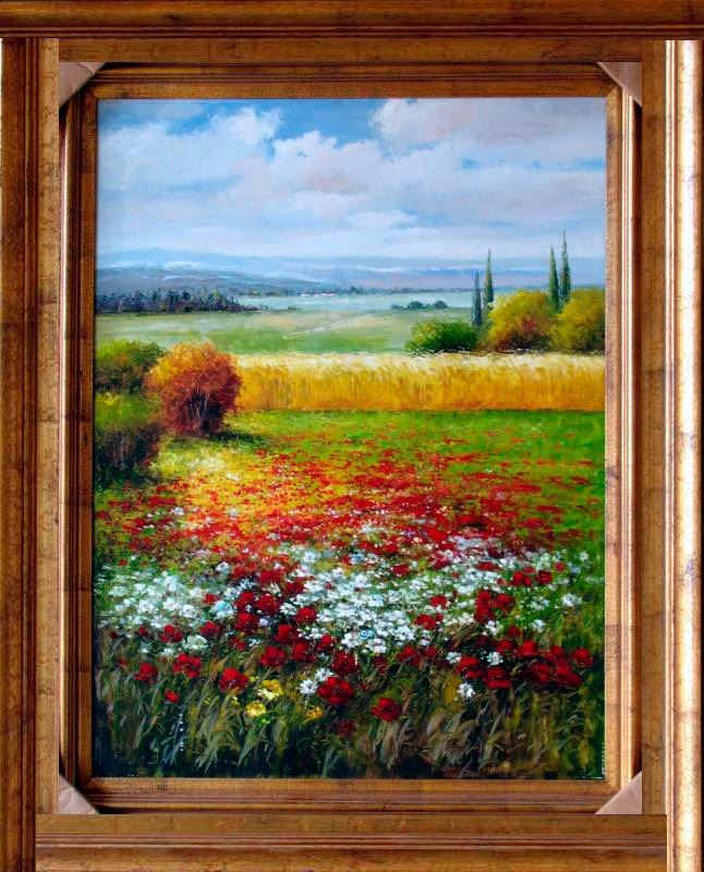 Alexi Romenelle | Title of Art: Golden Fields | Medium: Original Acrylic Painting Hand Signed by the Artist on Canvas | Unframed Size: 40 x 30 inches | Offerered Unframed. Framing will be offered to Lucky Winner at close of auction for additional cost. Framed Size: 50 x 40 inches | Value: $ 2850 | ArtForSale.com