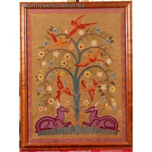 Vintage Hand-Stitched Crewel work of TREE OF LIFE with Unicorns and mythological figures -- Stunning!</em></td>