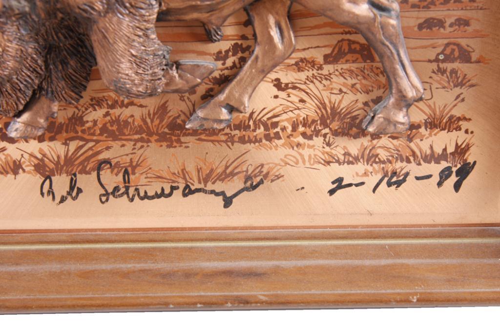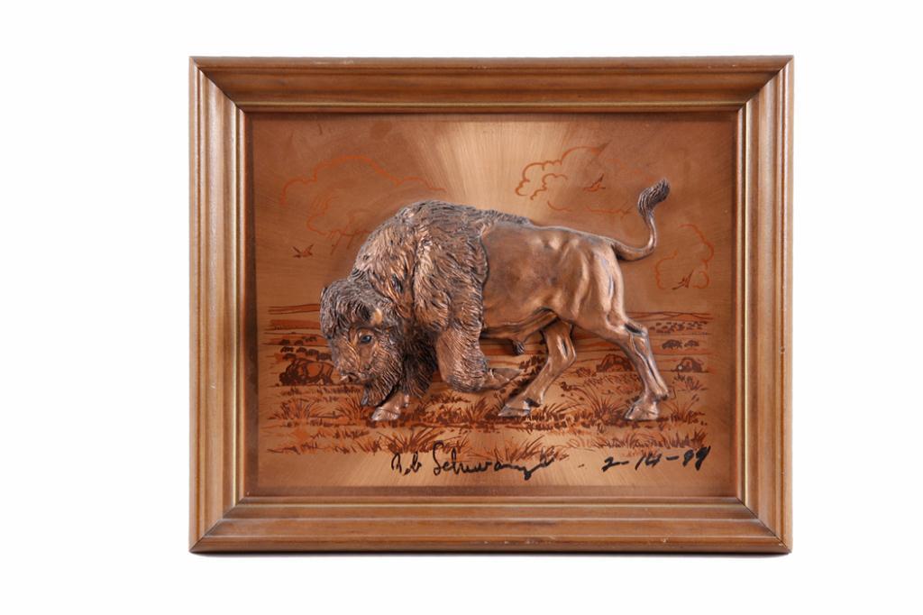 Framed Copper Embossed Buffalo Artist signed by Bob & Peggy Schwarze.Artist signed by Bob & Peggy Schwarze.
