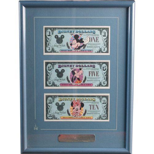 Framed, "Disney Dollars" Mickey, Goofy & Minnie