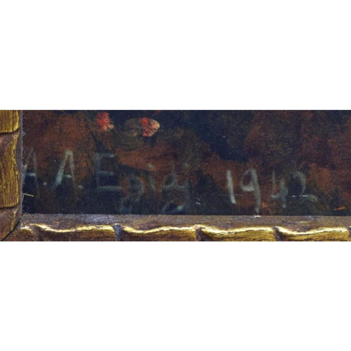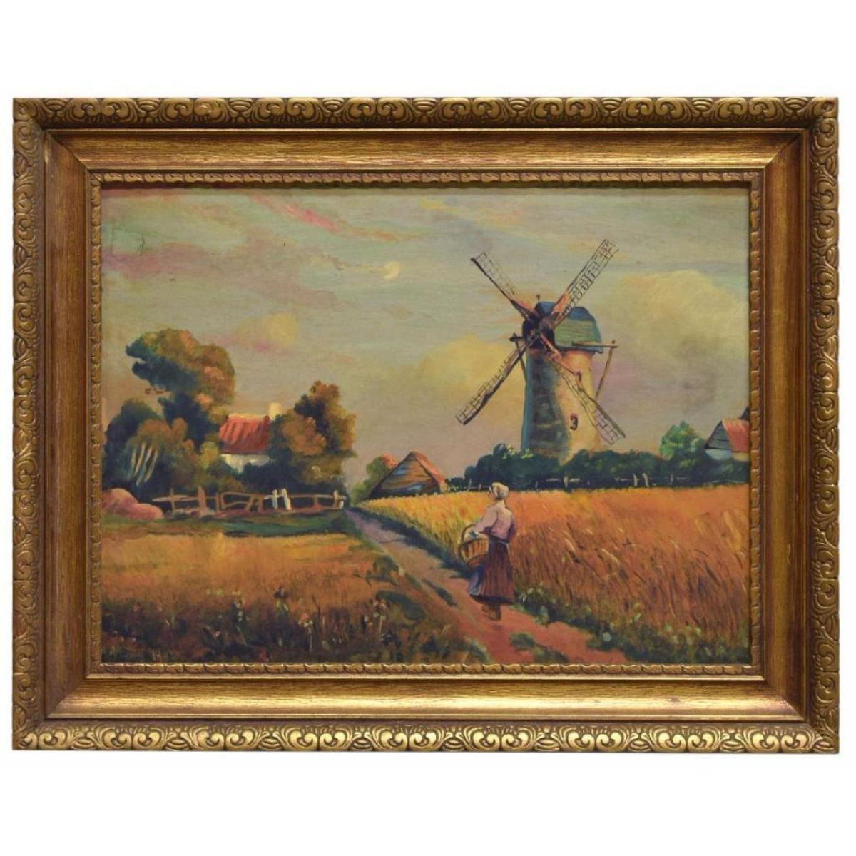 Framed oil on board, 1942, Landscape with Windmill, signed and dated lower left A.A. Egidij (?), approx sight: 14.25"h, 19.25"w, overall: 19.25"h, 24.25"w, 3lbs