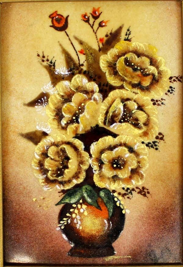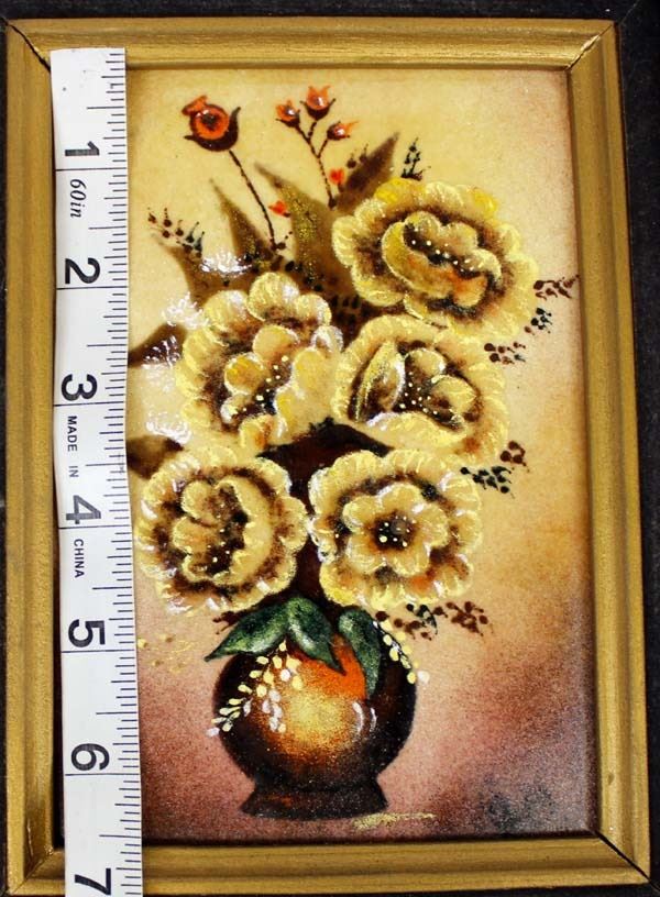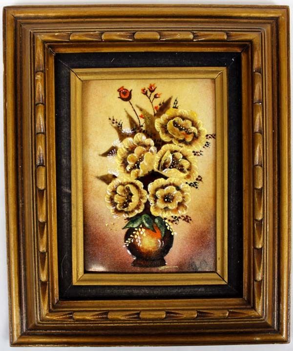 Framed Enamelware Picture, visual measures 6.5'' x 4.5'', overall framed measurement of 12'' x 10''