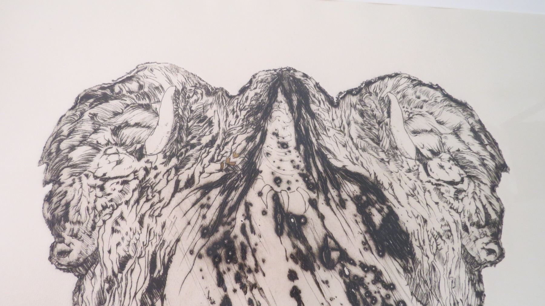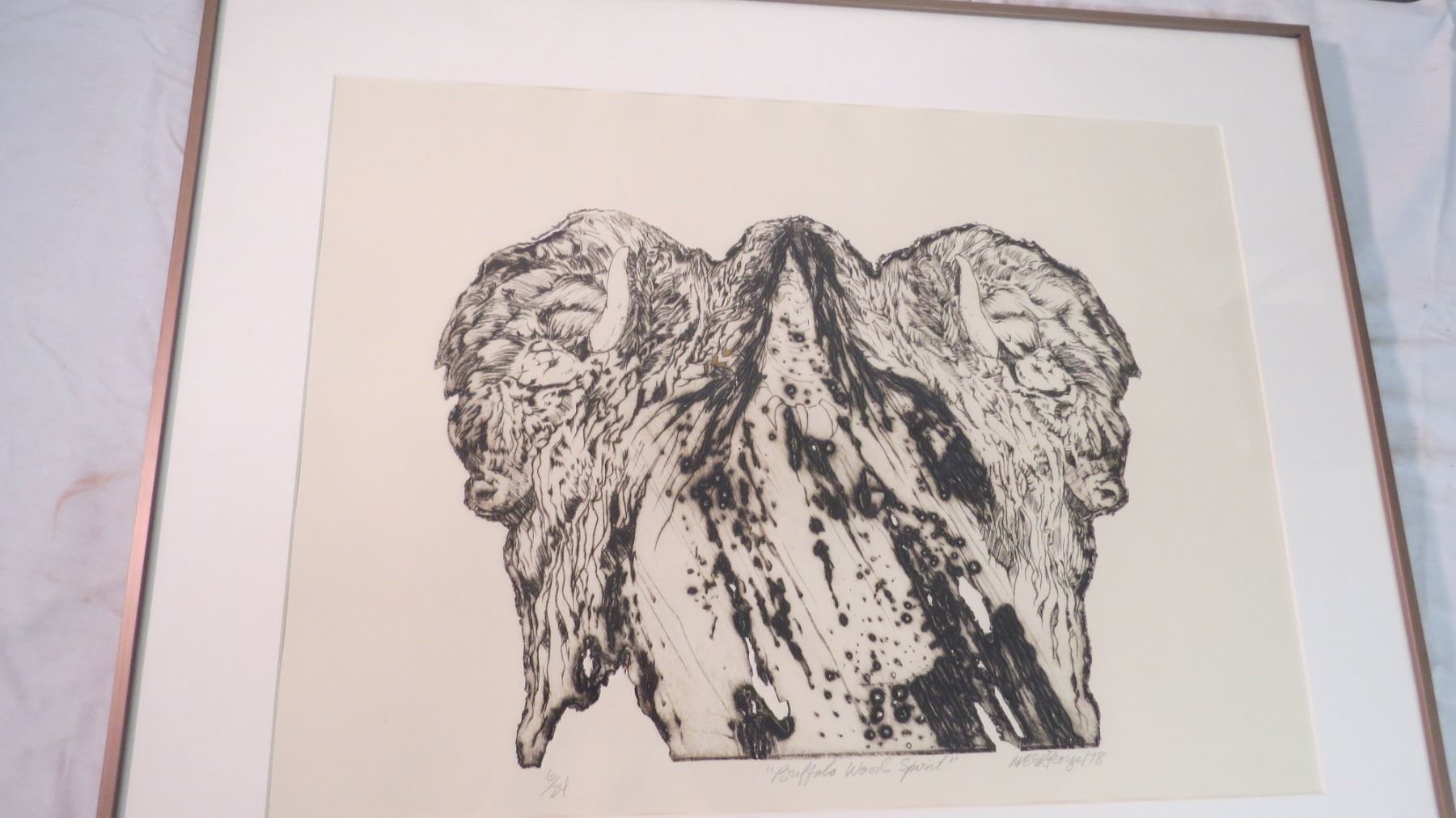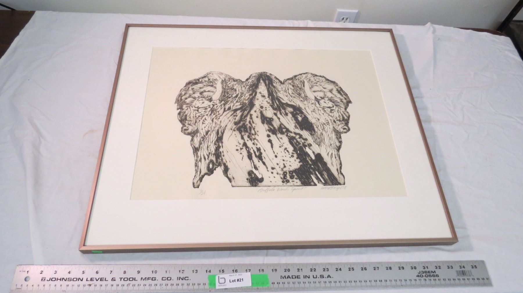Framed Etching 6/24 - Buffalo Wood Spirit - (1978 Elyse St George) - 17x23 (image size)