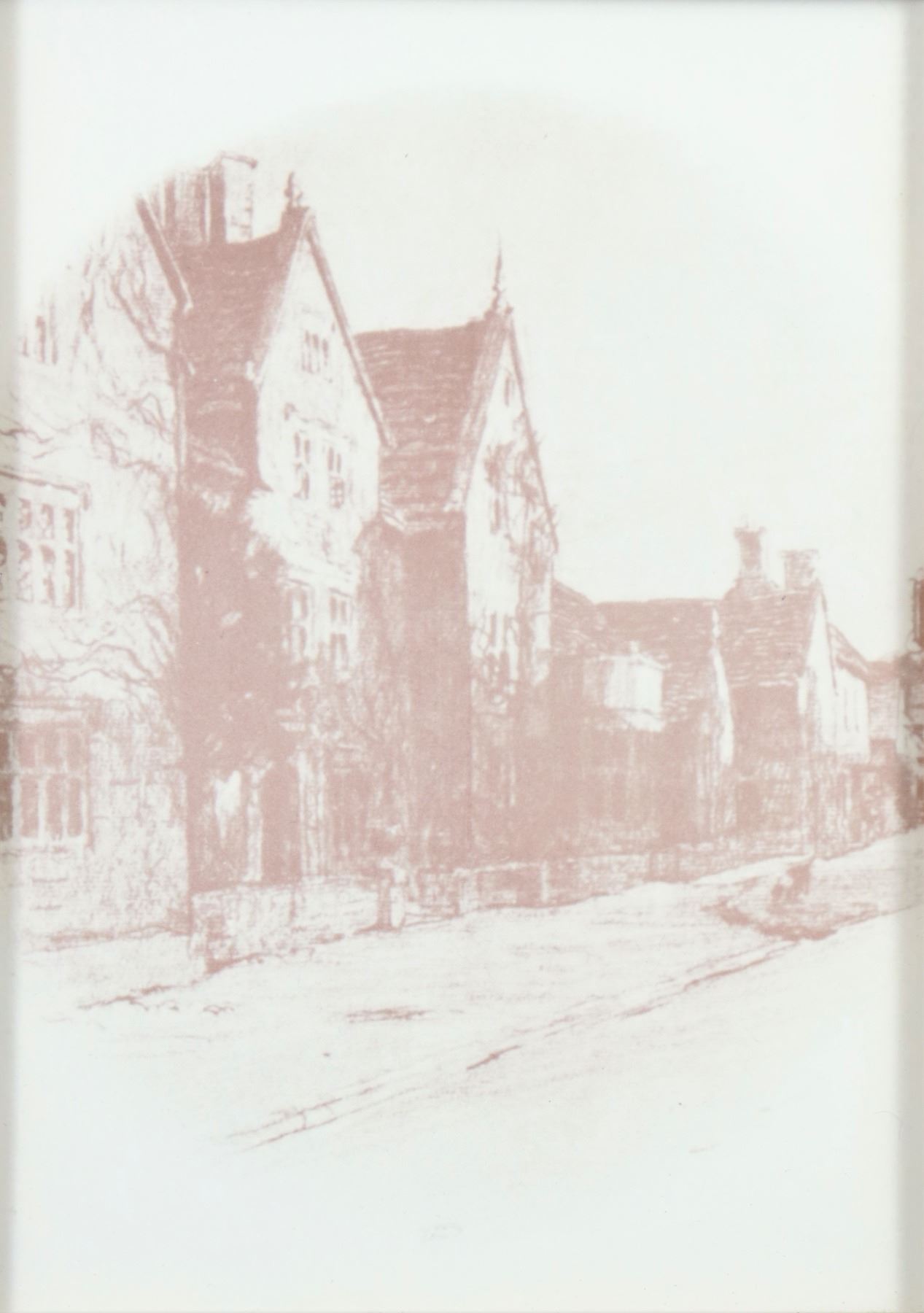 Etching from Lygon Arms, Broadway Worcestershire UK.