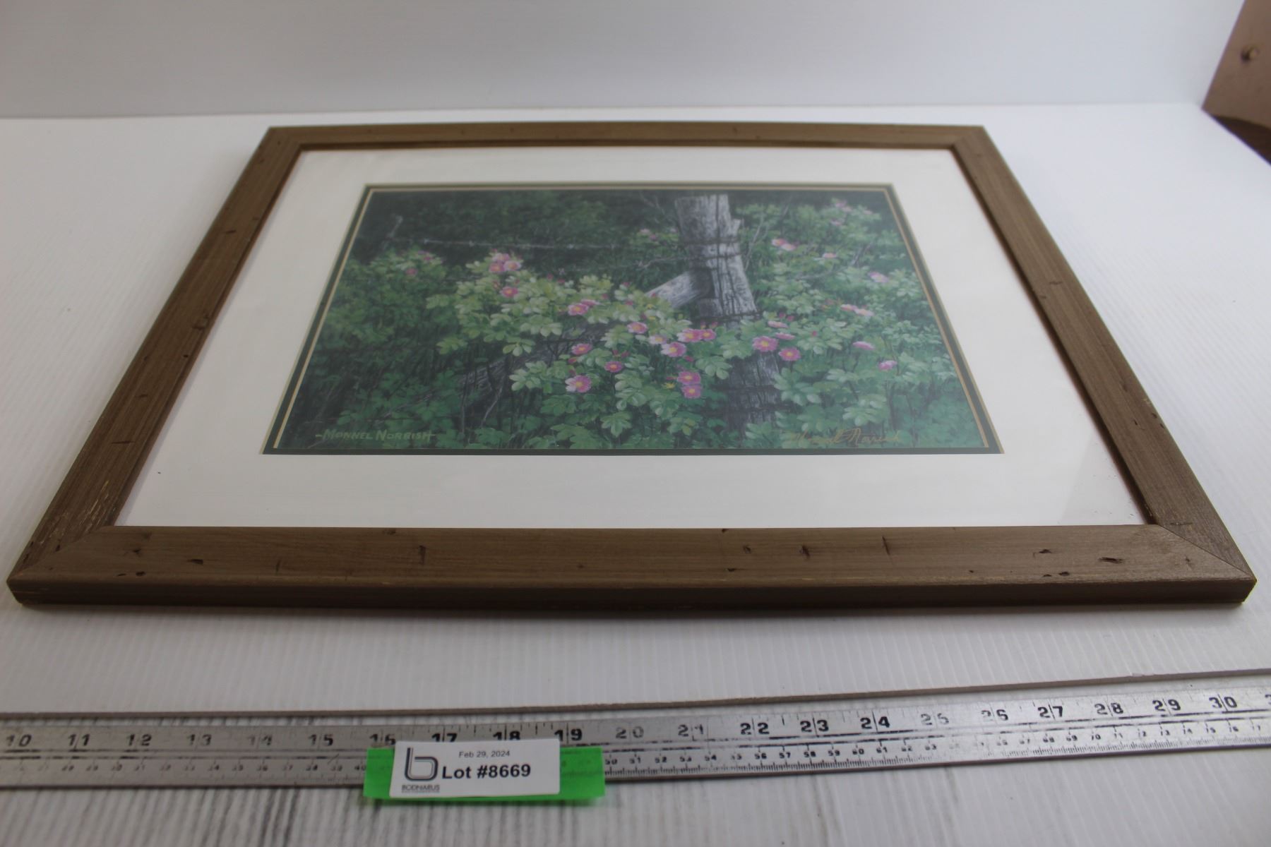 Framed Fence Post and Wild Rose Print - 22 1/2" x 18 1/2"