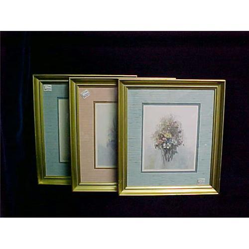 </font></strong>Framed Florals with Silk Mattes - Set of 3 lovely prints, by Bertrand, are professionally matted and in gold frames measuring approx. 16.5" x 18.5". Prints are numbered, 368/1500, 1196/1900, 331/1500 - all are in very good condition. </font>