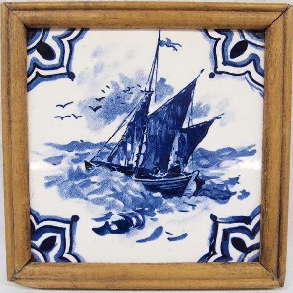 Framed Flow Blue Delft Style Tile, measures 5.5'' square