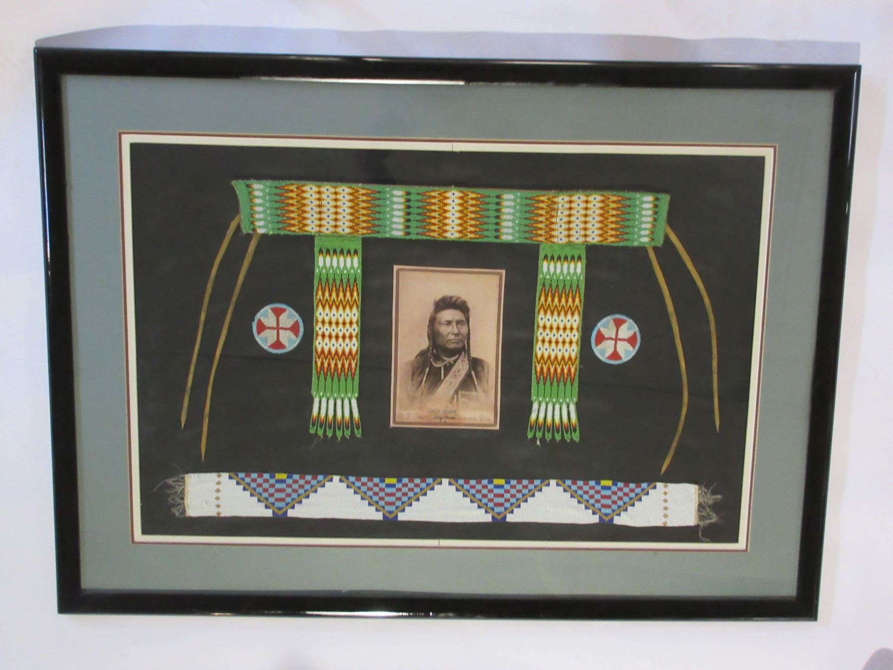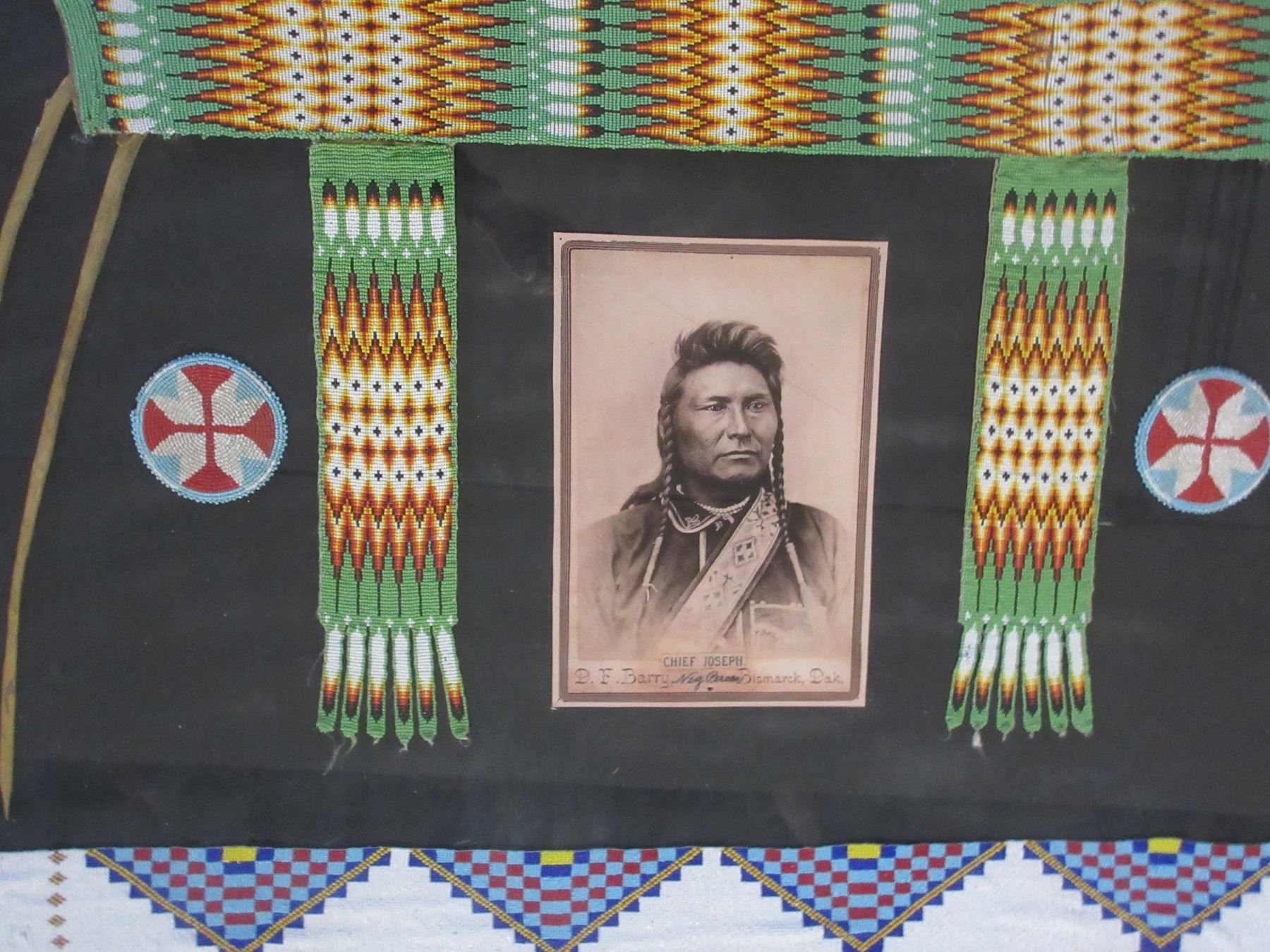 Framed Fully Beaded Native Belt And Sash- Chief Joseph Photo By DF Barry- 60" X 43"
