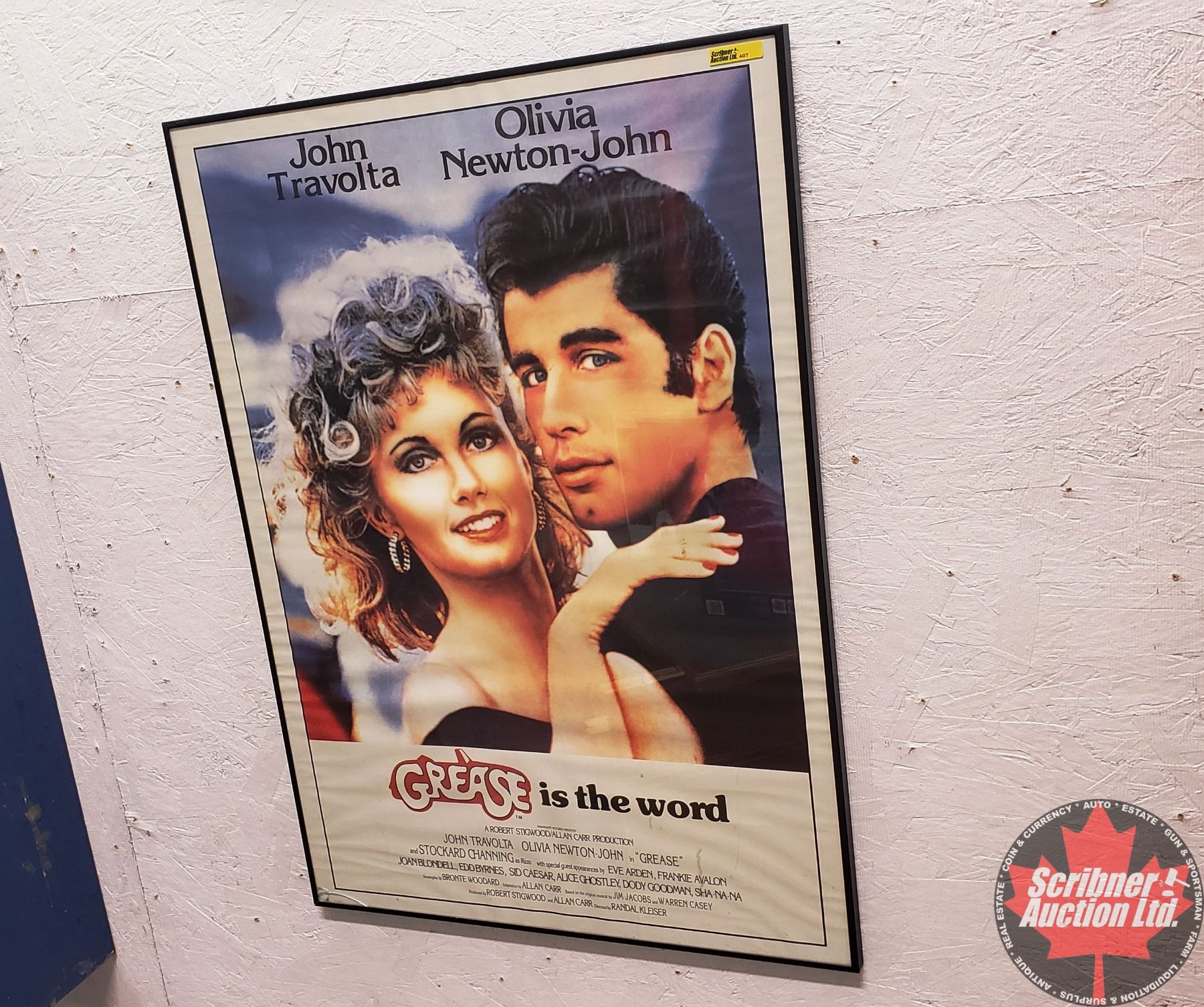 Framed GREASE Movie Poster (34"H x 24"W) (Note: Frame glass cracked)