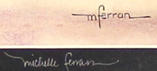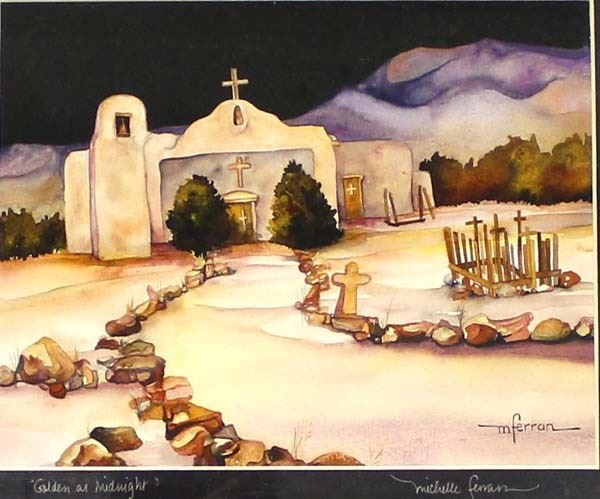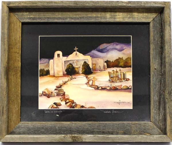 Framed Hand Signed Print ''Golden at Midnight'' by Michelle Ferran, visual measures 7.5'' x 9.5'', matted and under glass, information on back of painting about artist, ''Ferran give back by highlightingnorthern New Mexico's outstanding beauty and donating some of her artwork to worthy causes.''