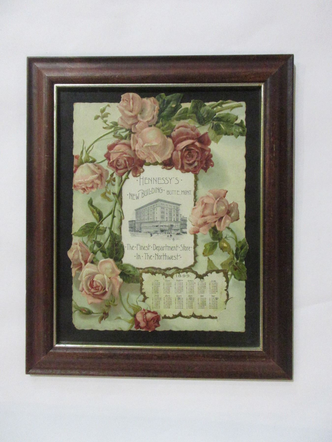 Framed Hennessys Department Store Advertisement From Butte MT- 1899 Calendar- 17" X 14"