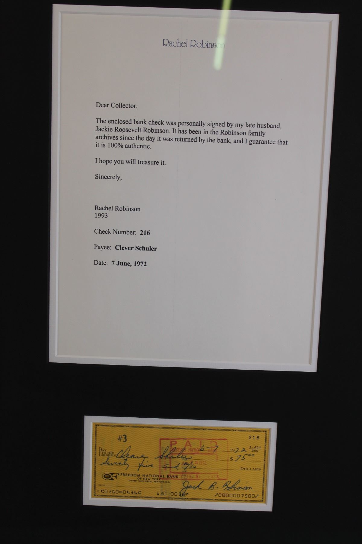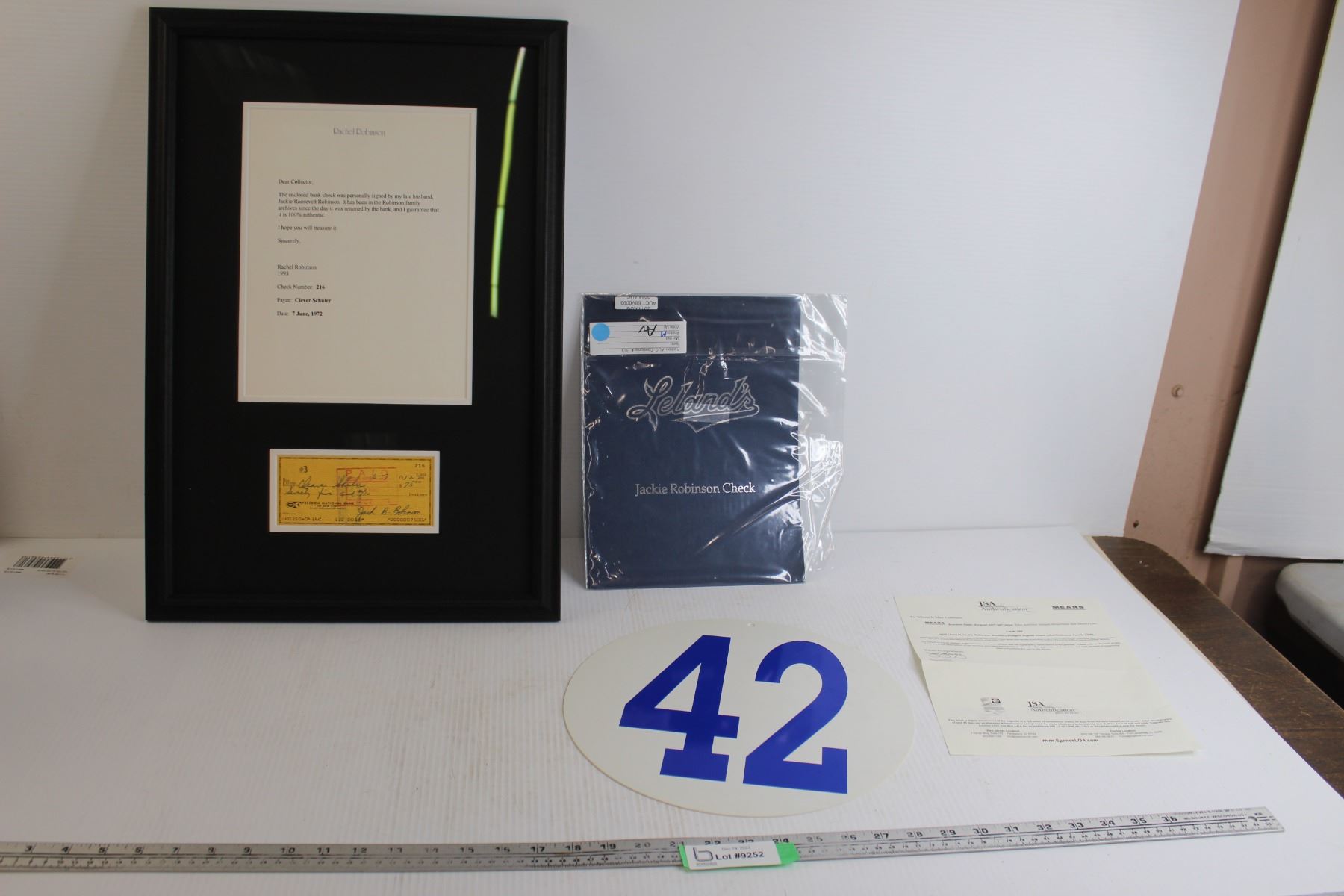 Framed Jackie Robinson Check - 15 3/4" x 23", 42 Sign - 12" Diameter w/ Certificate of Authenticity