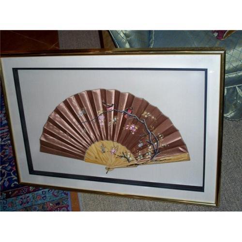 <tr><td>Title:Framed Japanese Hand Painted Silk Fan</td></tr>