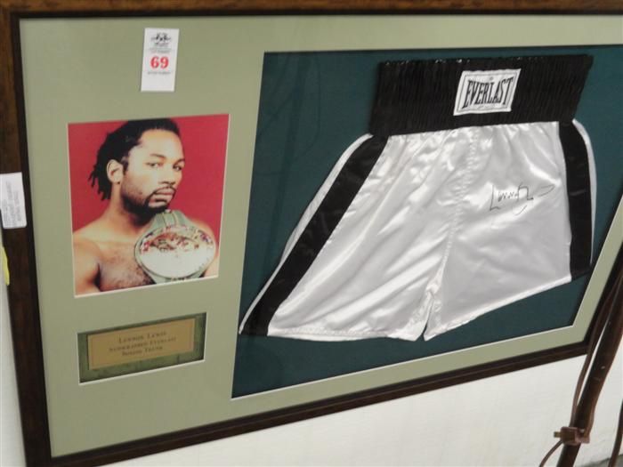 Framed Lennox Lewis Autographed Everlast Boxing Trunk