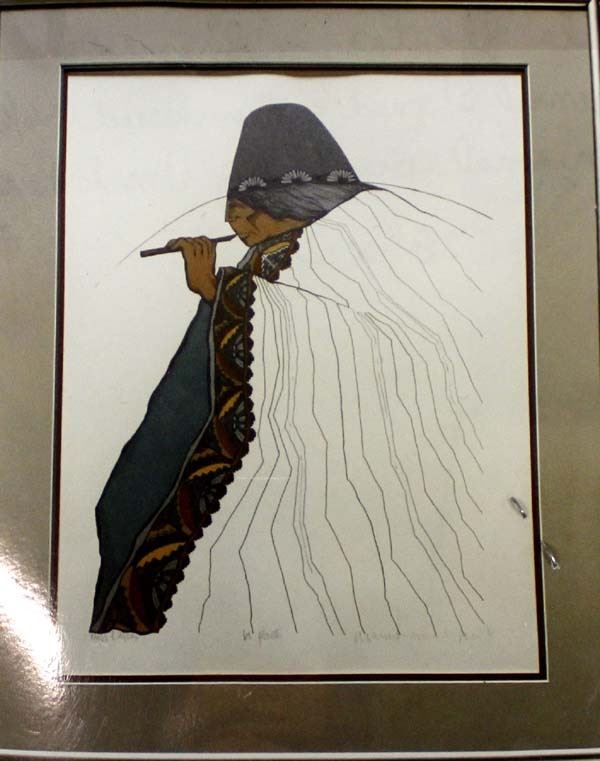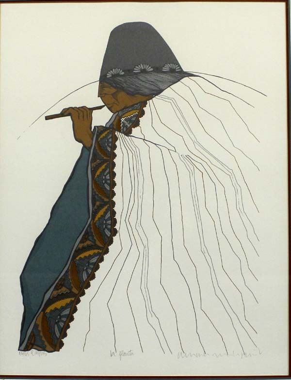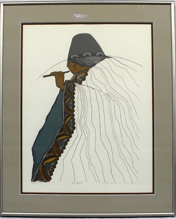 Framed Limited Edition Amado Maurilio Pena Print ''La Flauta'', #56/65, professionally framed and triple matted, under glass, hand signed, numbered, and titled