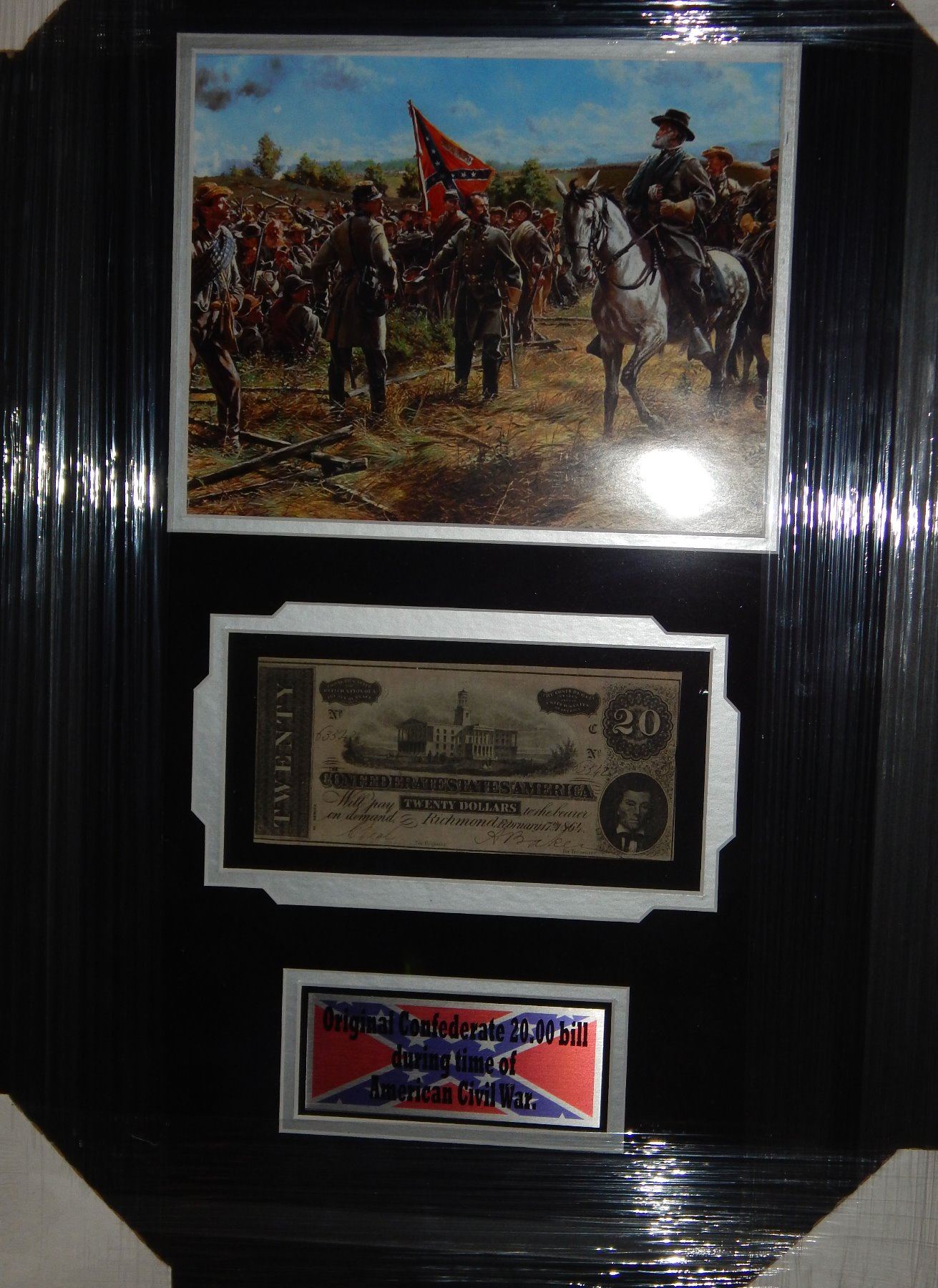 Limited edition framed original Confederate $20.00 bill. All items come with a certificate of authenticity good for the life of the piece.