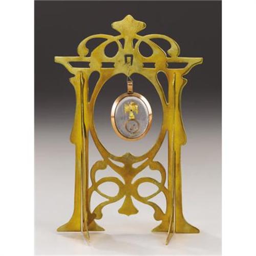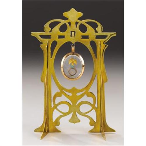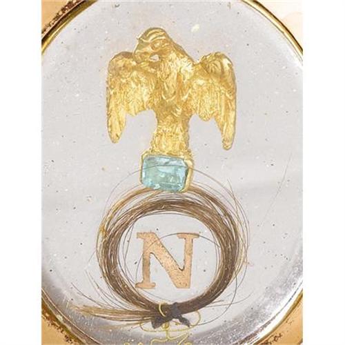 <B>Framed Lock Said to Be of Napoleon's Hair</B></I><BR><BR>An oval pendant locket covered with glass on both sides, enclosing a lock of hair encircling the initial <I>N </B></I>for Napoleon Bonaparte, Emperor of France, King of Italy (r. 1804-14), above a French Imperial Eagle, the frame suspended from an Arts & Crafts style brass openwork stand-the locket- 2 in. high; the stand- 7 ¼ in. high<BR><BR>Provenance:<BR>Purchased from The Armoury of St. James, London<BR><BR><b>Shipping:</b> Requires 3rd Party Shipping (<a target="_blank" href="http://www.heritageauctions.com/common/shipping.php">view shipping information</a>)