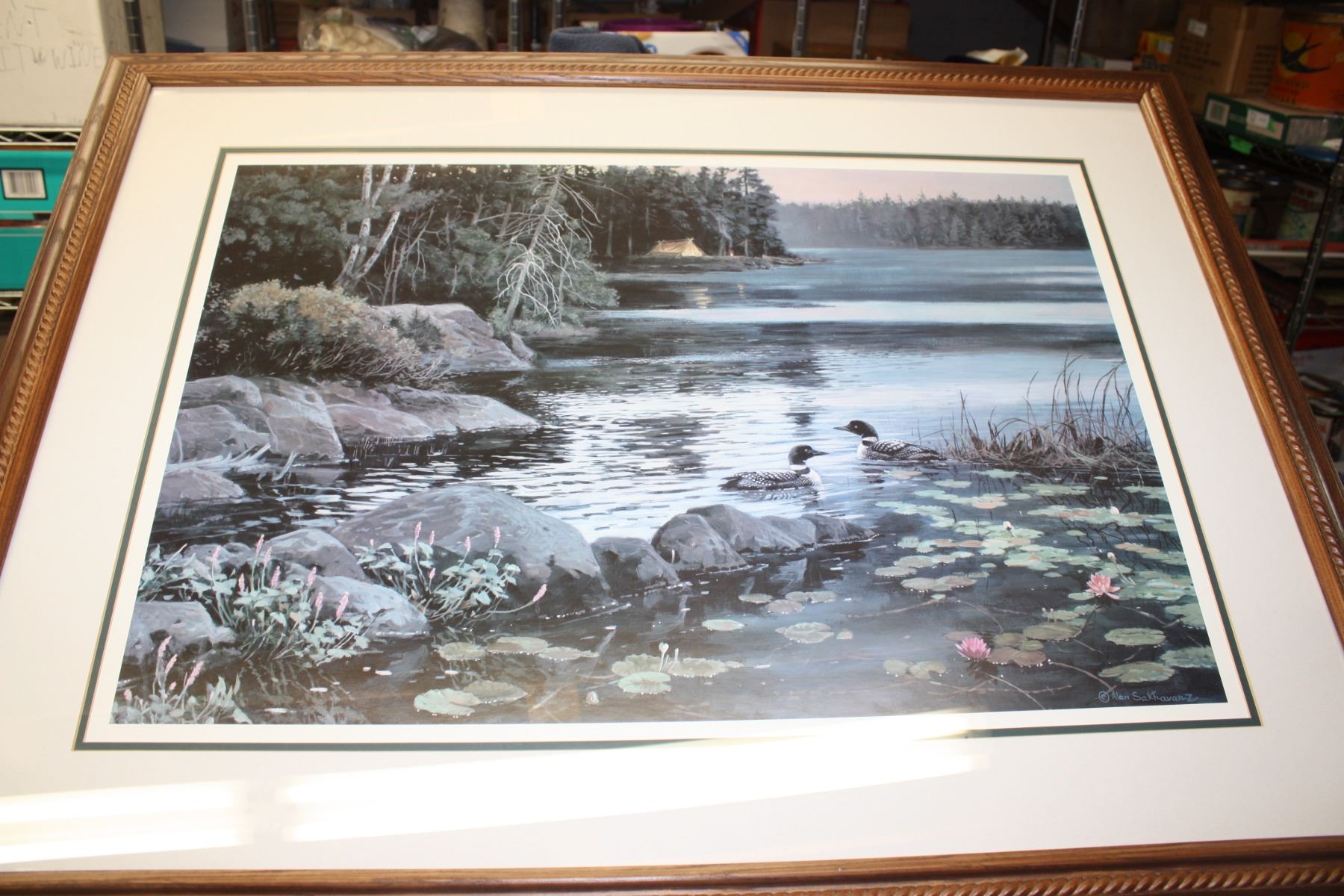 Framed Loons on a Lake by Alan Sakhavarz 43" W by 32.5" T