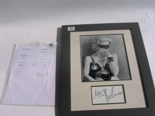 Framed Madonna Autograph mounted with topless bondage b/w Photo from "Sex" authentication Frasers 14
