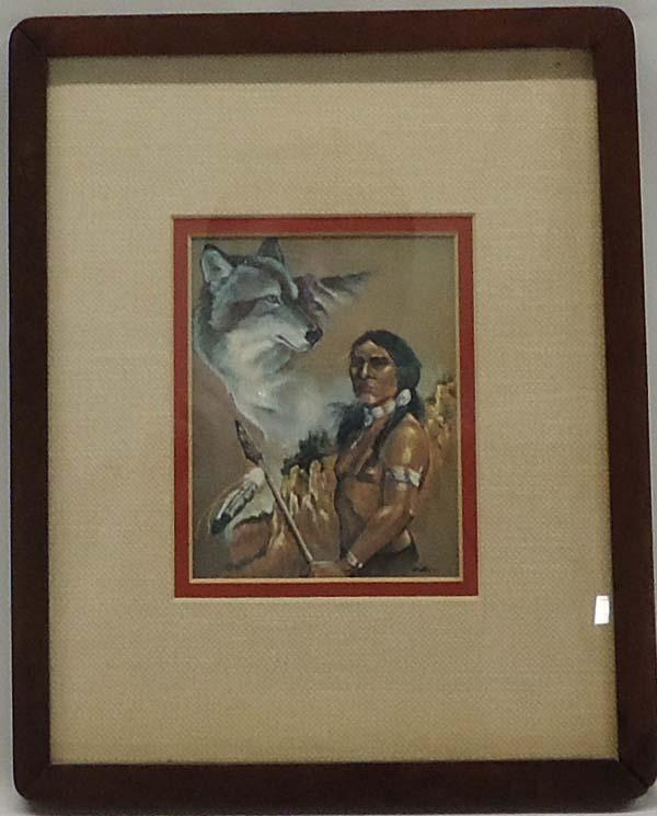 Framed, Double Matted, Under Glass, Indian Print. Visual measures approx. 3 3/4''W x 4 3/4''H. Buyers Pay Actual Shipping and Handling Charges(see terms and conditions for more information).