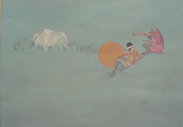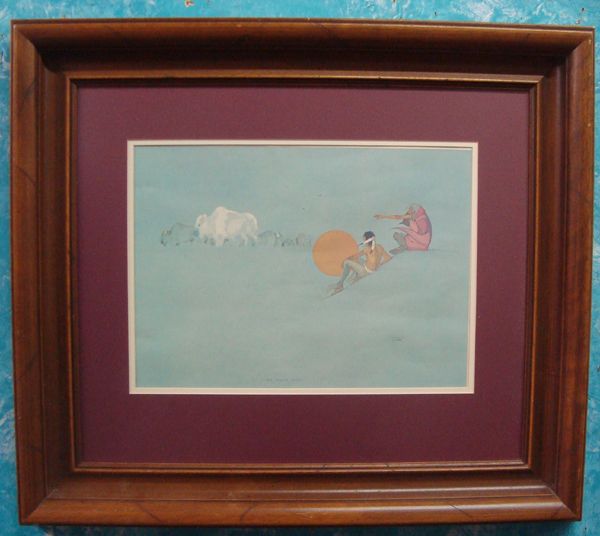 From the Collection of Nick & Suzanne Nicholas we have a Framed & Matted Jerome Tiger Print. This striking piece titled ''the Legend Teller'' has a visual measurement of approx. 11.5'' x 16''.