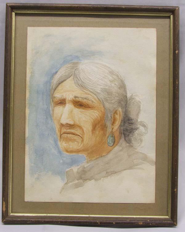 Navajo Drawing by Bronson behind glass, visual measures approx. 12 x 9''. Buyers Pay Actual Shipping and Handling Charges(see terms and conditions for more information)