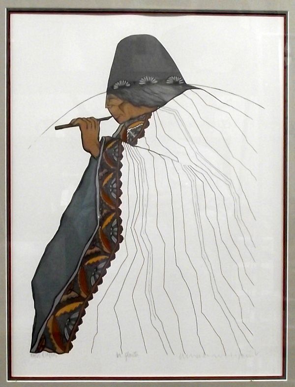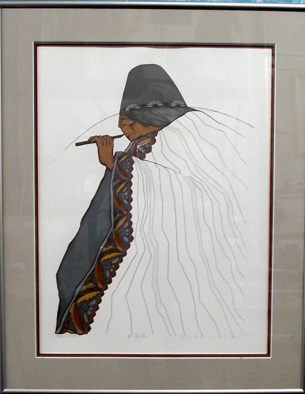 Framed, Matted & Numbered Print by Amado Pena. From the collection of Nick and Suzanne Nicholas. This wonderful Print is titled La Flauta and is signed and titled across the bottom. Amado Maurilio Peña, Jr. was born in Laredo, Texas in 1943. He studied art and education at Texas A & I, where he received his Bachelor's and Master's Degrees. The approx visual size is 22''H x 17''w.