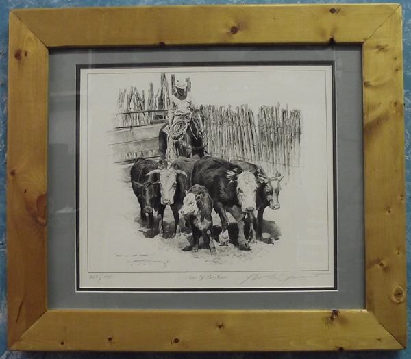 Framed & Matted Robert ''Shoofly'' Shufelt Print. This beautifully detailed piece is titled ''None--Of--The--Same--'' and is hand signed and numbered 263/400 by the artist. Known for pencil drawings of western scenes, Robert ''Shoofly'' Shufelt was born in Illinois in 1935, and has called Arizona home since 1976. He earned a degree from the University of Illinois and worked for twenty years as an illustrator in Chicago, doing advertising and television story boards. This item has a visual measurement of approx. 12''H x 14.5''W