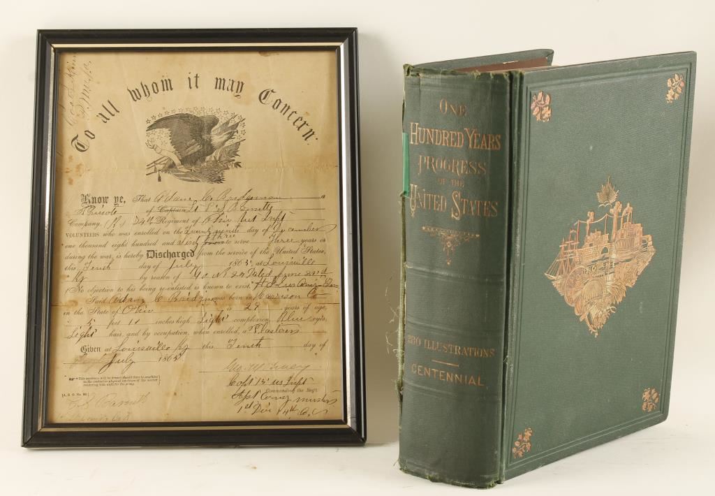 Adam P Bridgeran dated July 10,1865. Also included-100 years of progress of the United States.