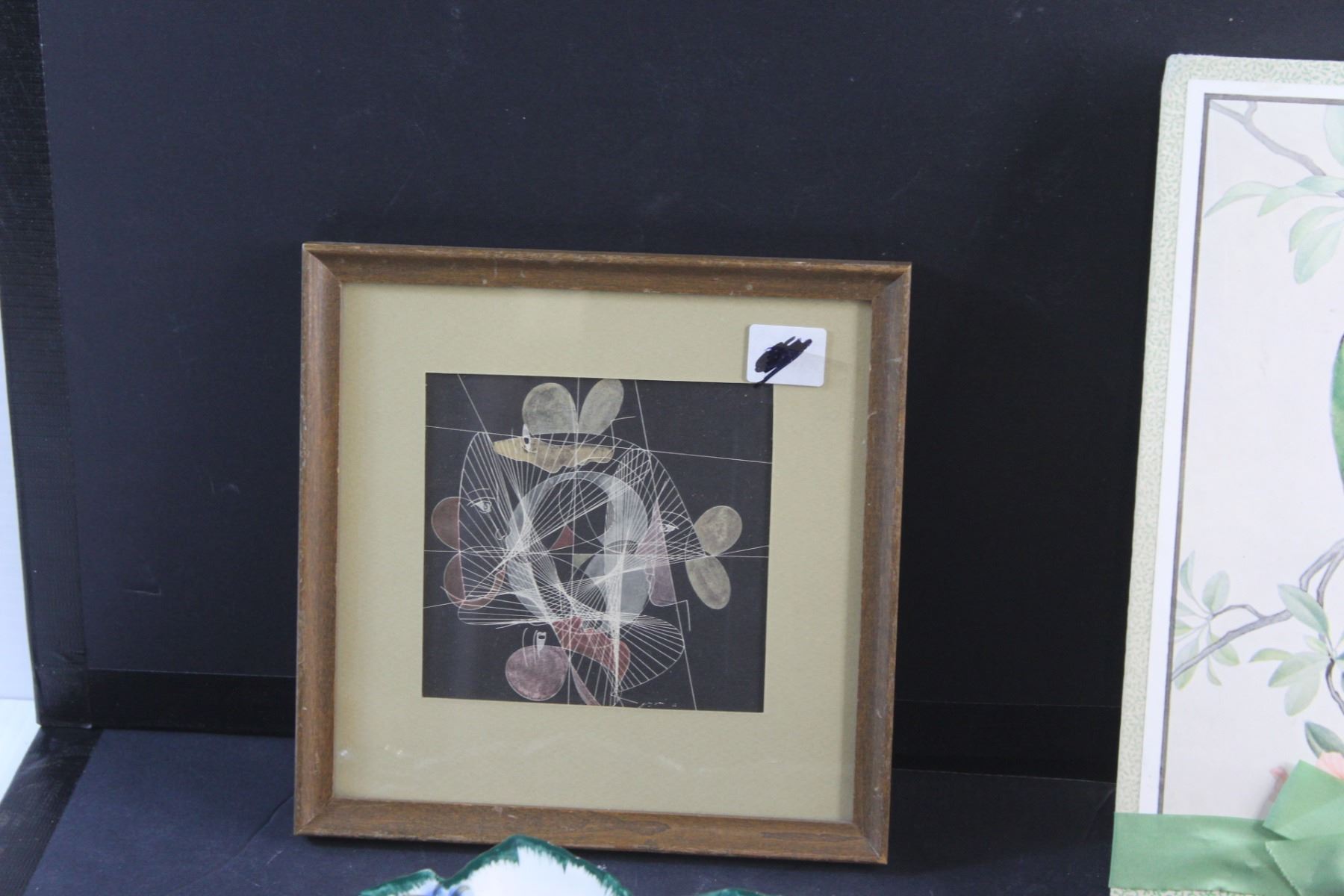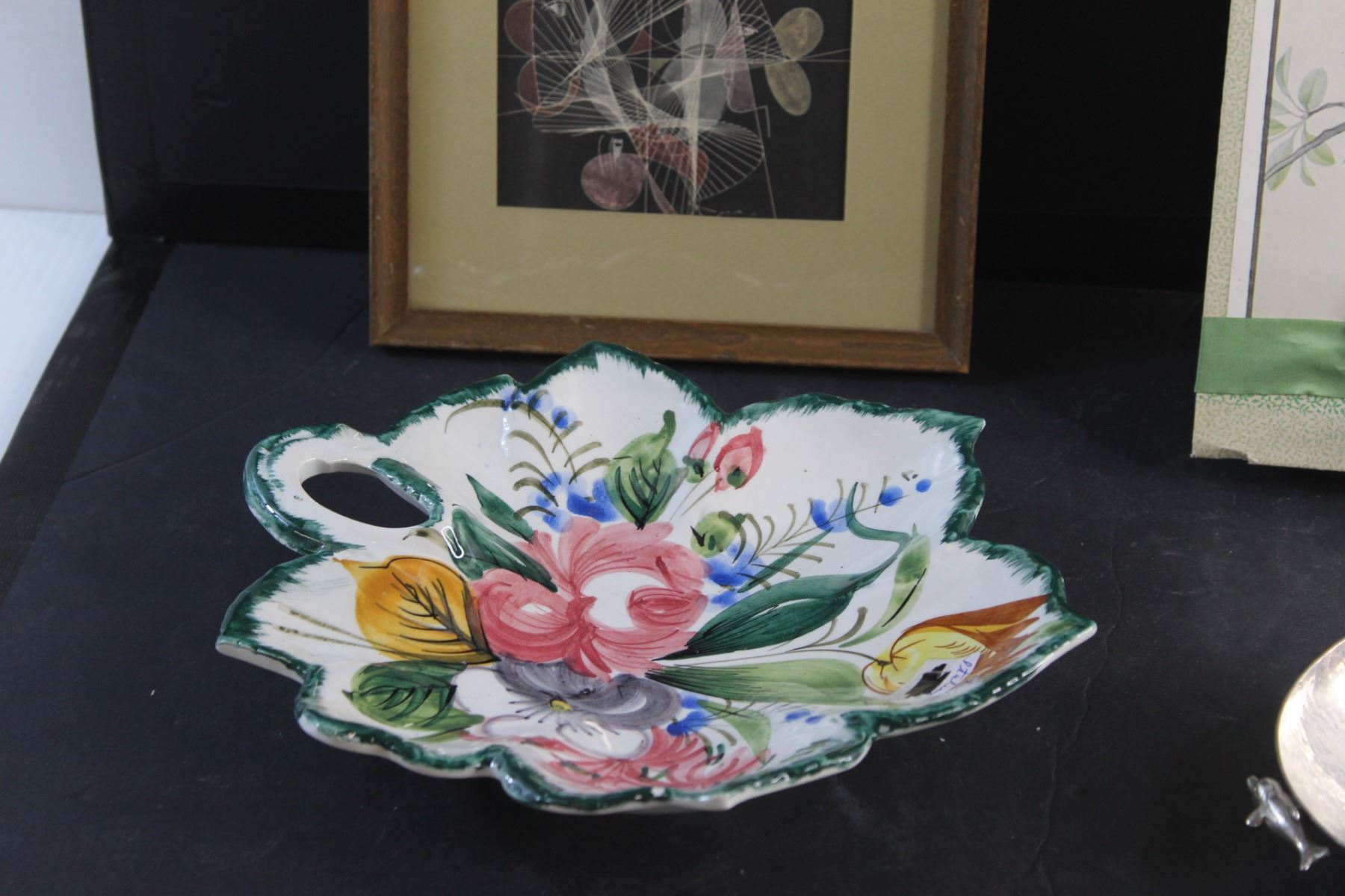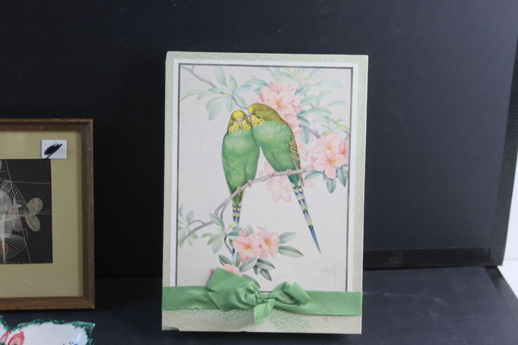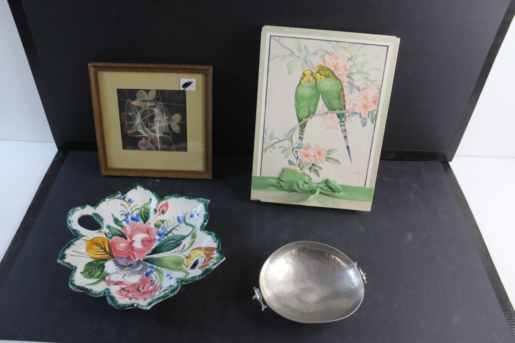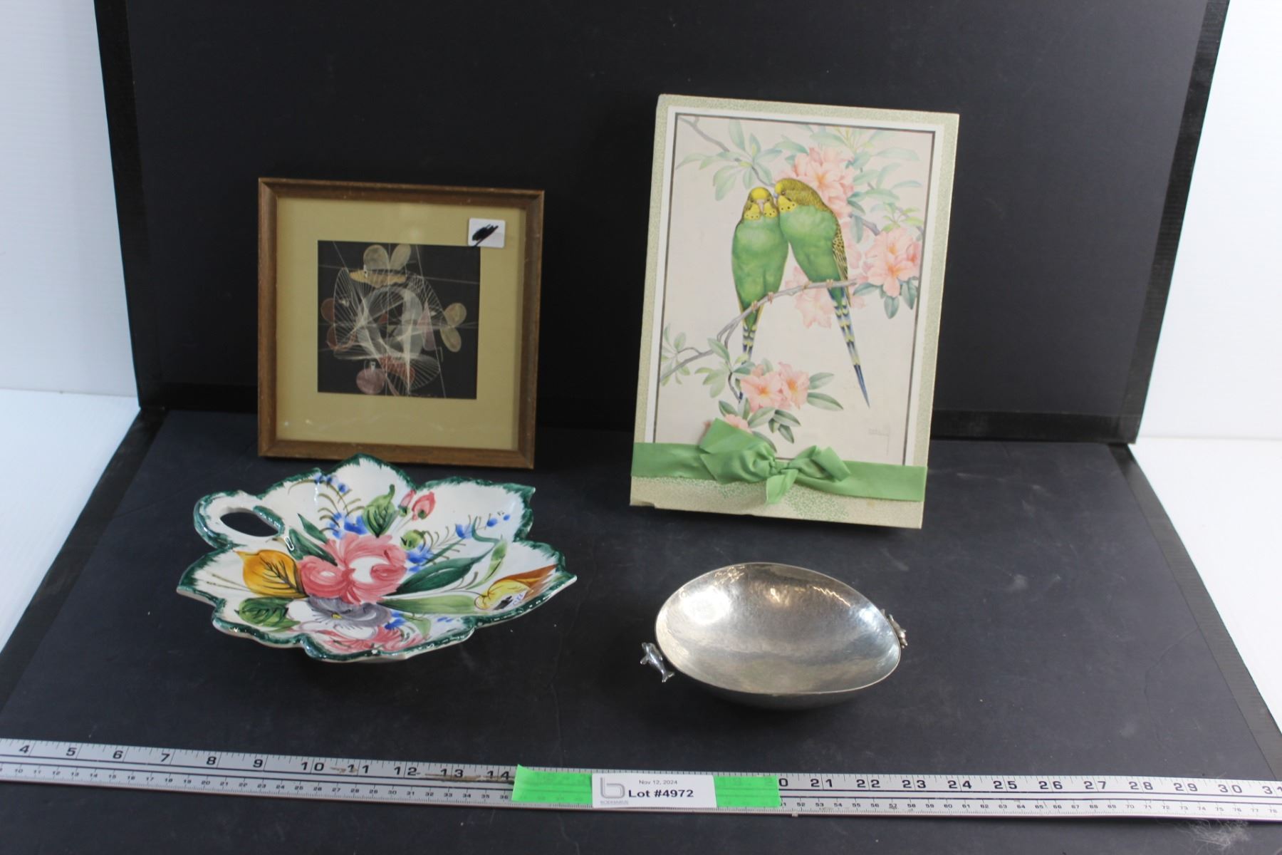 Framed Modern Art Print, Serving Floral Ceramic Tray, Pewter Dish and Parrots Gift Box