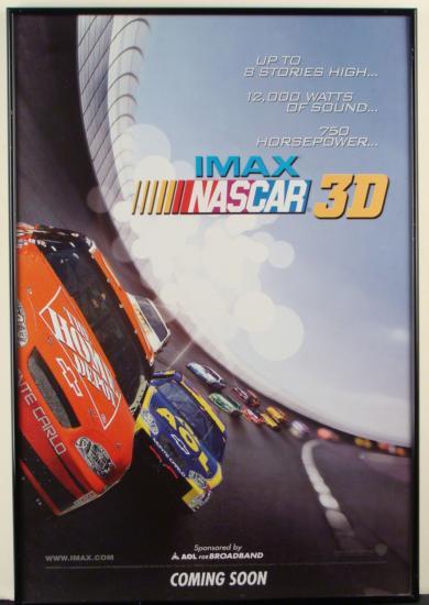 Here we are offering a framed piece of NASCAR history that also makes a decorative wall art. This is a framed NASCAR Imax 3d Promotional Movie Card. Large in size, it measures approximately 25" long by 17-1/4" wide. This NASCAR piece is framed and ready for your wall. It will make a decorative addition to your home, office or recreation room.