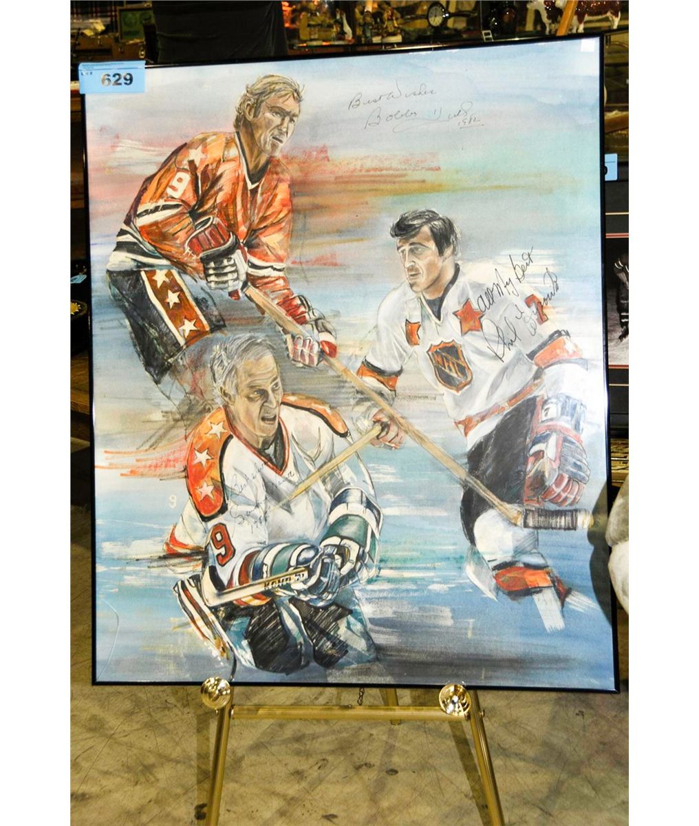 Framed NHL greats signed print