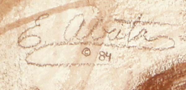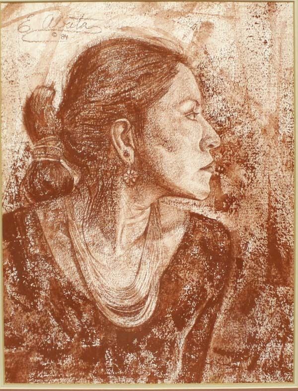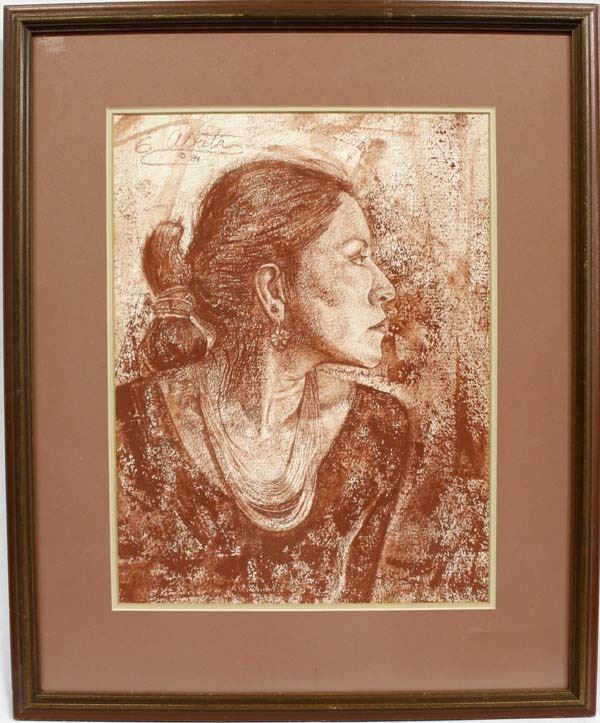 1984 Framed Native American Navajo Print by E. Abeita, visual measures 12'' x 16'', framed measures 23.25'' x 19''