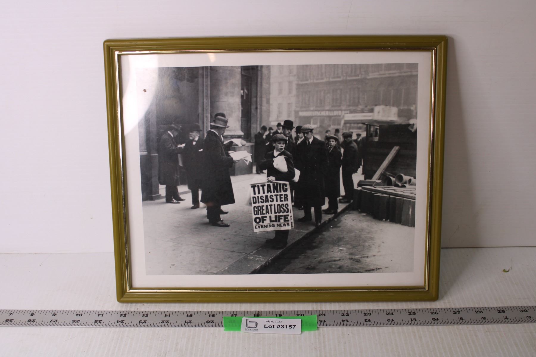 Framed Newsboy with Titanic Photo - 12" x 15":