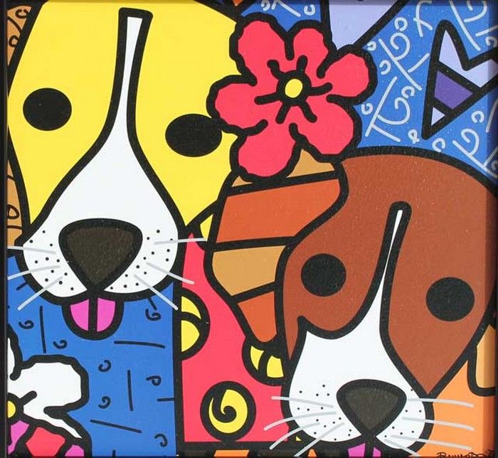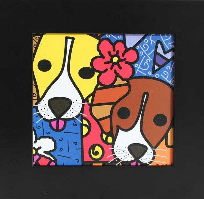 Offset Lithograph on Paper by artist Romero Britto , titled "Duke and Grace ". Beautifully Museum Framed! Dimentions are approximately 17x17. Certificate of authenticity provided. Authentic guaranteed! CJRAP3870060