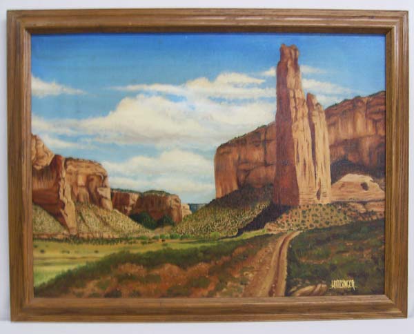 Framed Oil Landscape Painting by Whitesinger. Oil on canvas. Measures 23.5''wx18''h. Buyers Pay Actual Shipping and Handling Charges(see terms and conditions for more information).