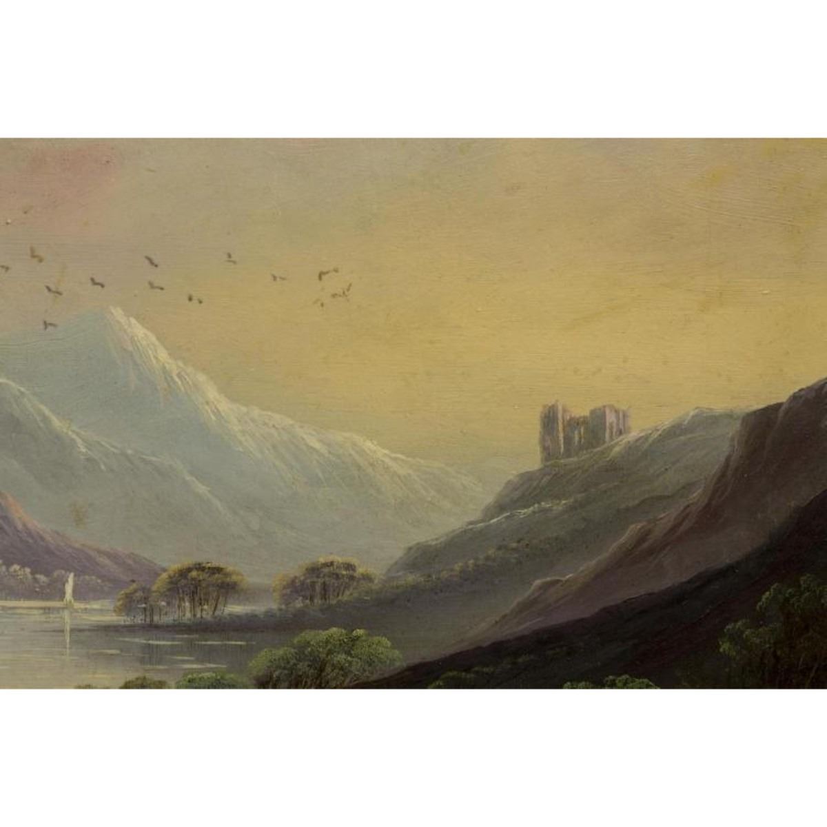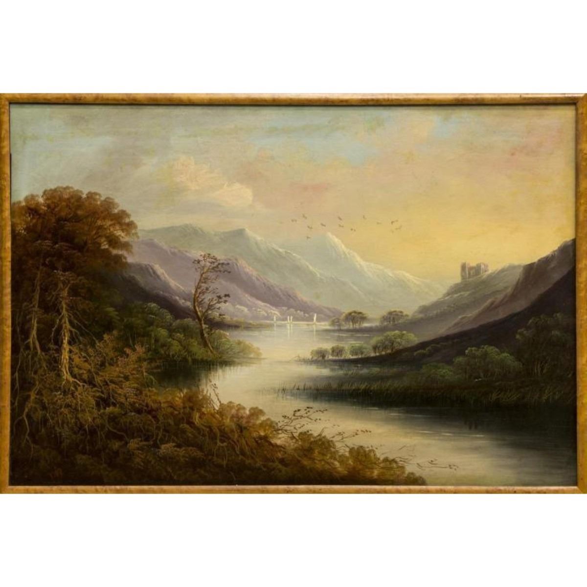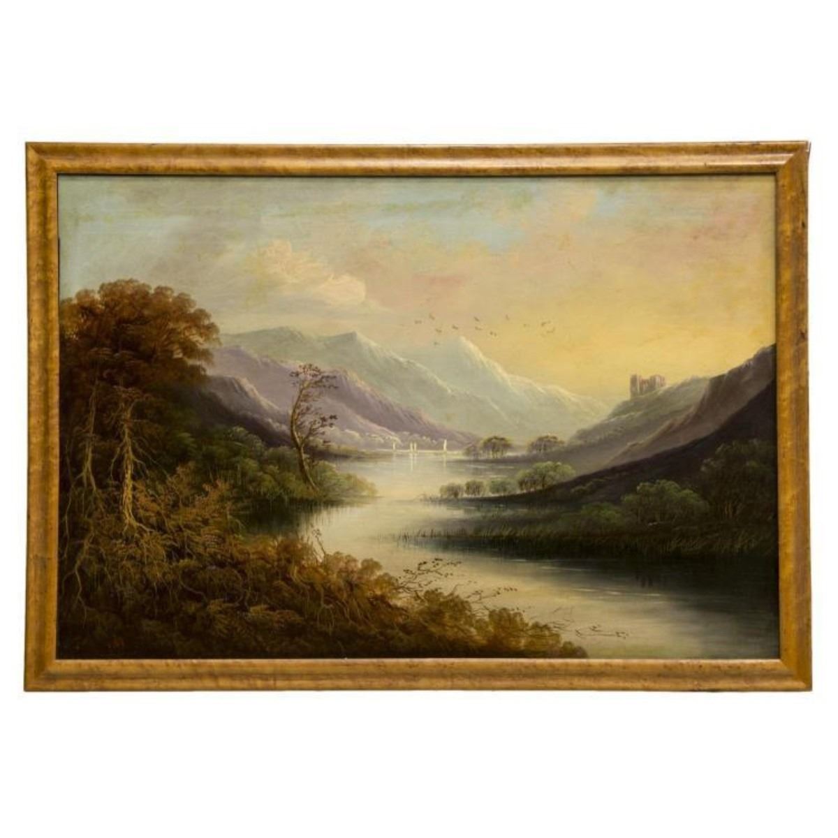 Description: Framed oil on board painting, Mountain Landscape, in the manner of Thomas William Fripp (British Columbia, Canada, 1864-1931), signed lower left T.W, sight: 21.25"h, 31"w, overall: 24.25"h, 34"w, 6.75lbs - 9226-021718-IN-219
