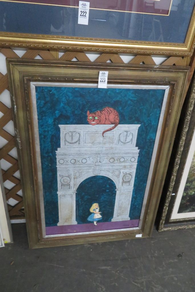 Framed Oil On Canvas "Alice In Wonderland"