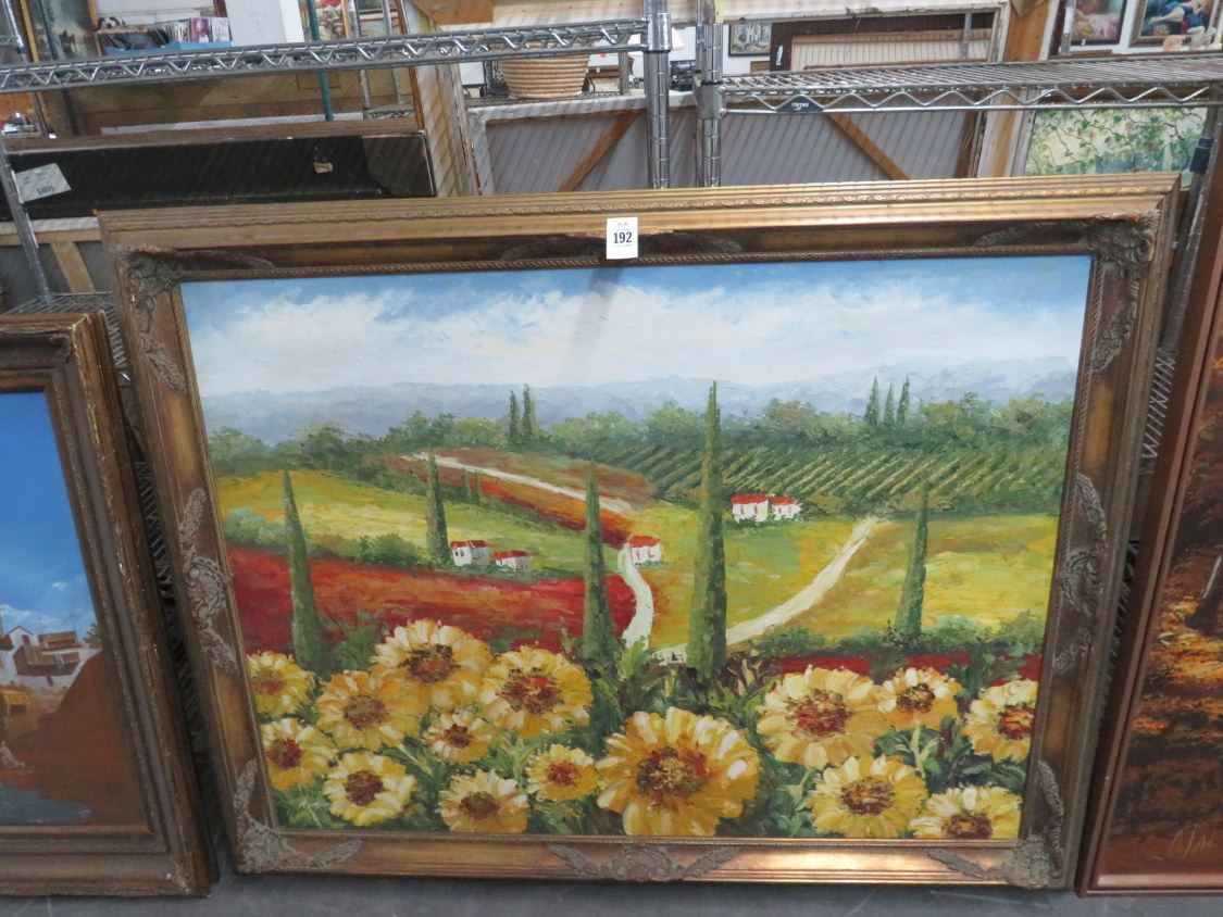 Framed Oil On Canvas Italian Countryside - 40 X 48