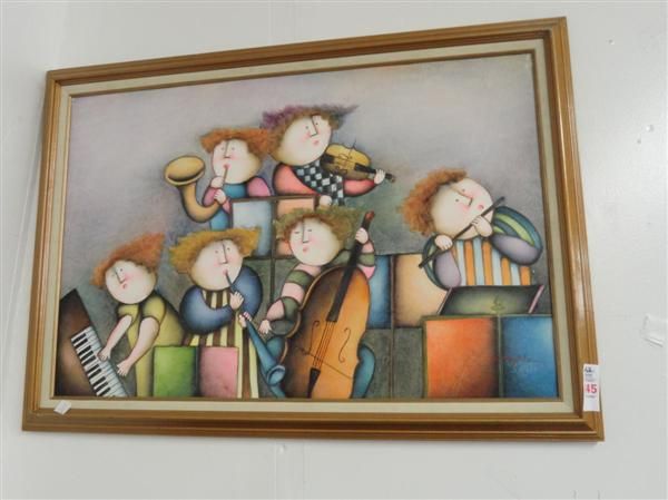 Framed Oil On Canvas "Ladies 6 Piece Band" by Roy Baz
