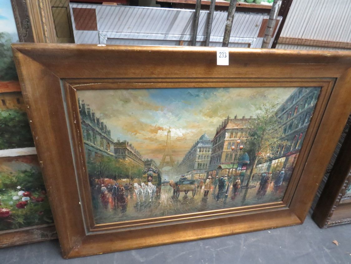 Framed Oil On Canvas Paris Street Scene - 30 X 40