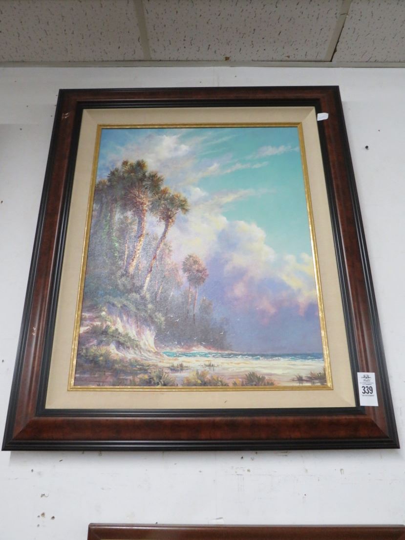 Framed Oil On Canvas Tropical Beach Scene - 30 x 36