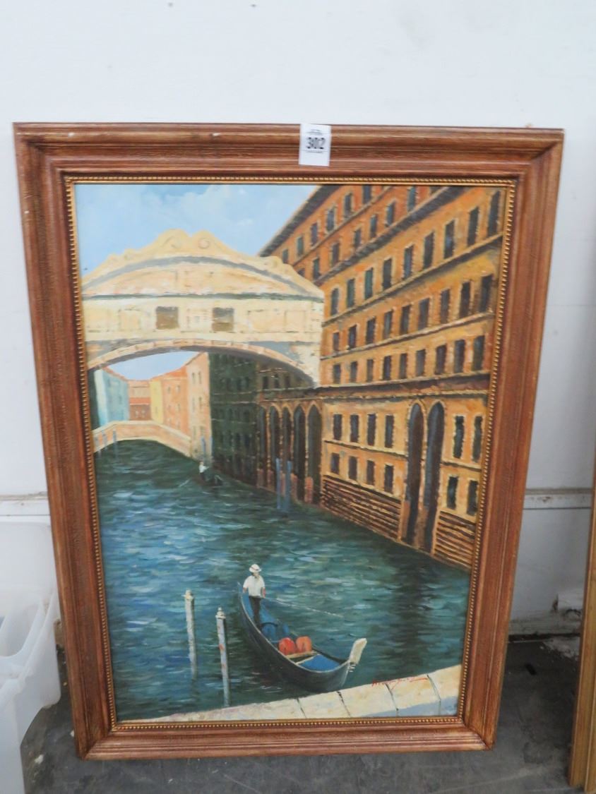Framed Oil On Canvas Venice Canal Scenes - 2