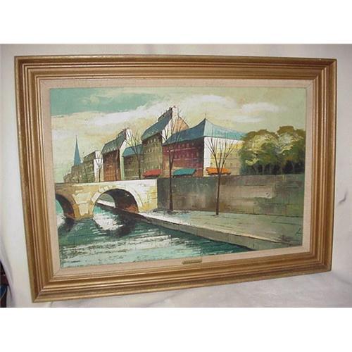 Framed Oil Painting 31 1/4" x 43 3/4" Canal Scene, signed Menelaos lower right.