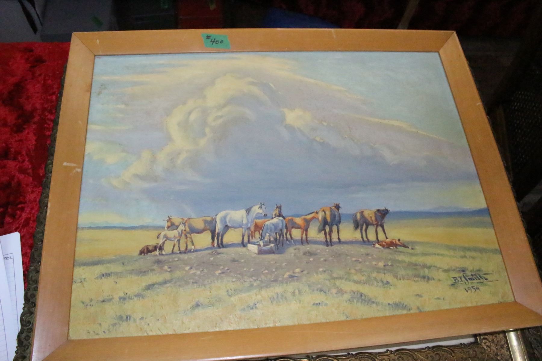 Framed Oil Painting of Horses by B. T. Smith (1954)