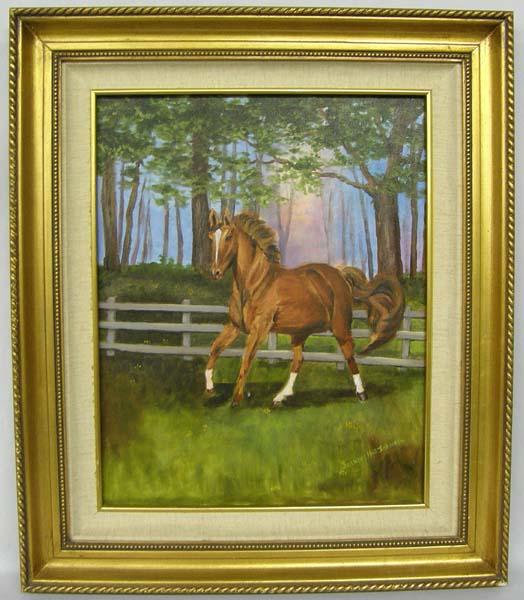 Framed Oil on Canvas of Horse by Frances Johnson. Visual measures approx. 19.75''Hx15.75''W. Buyers Pay Actual Shipping and Handling Charges(see terms and conditions for more information).