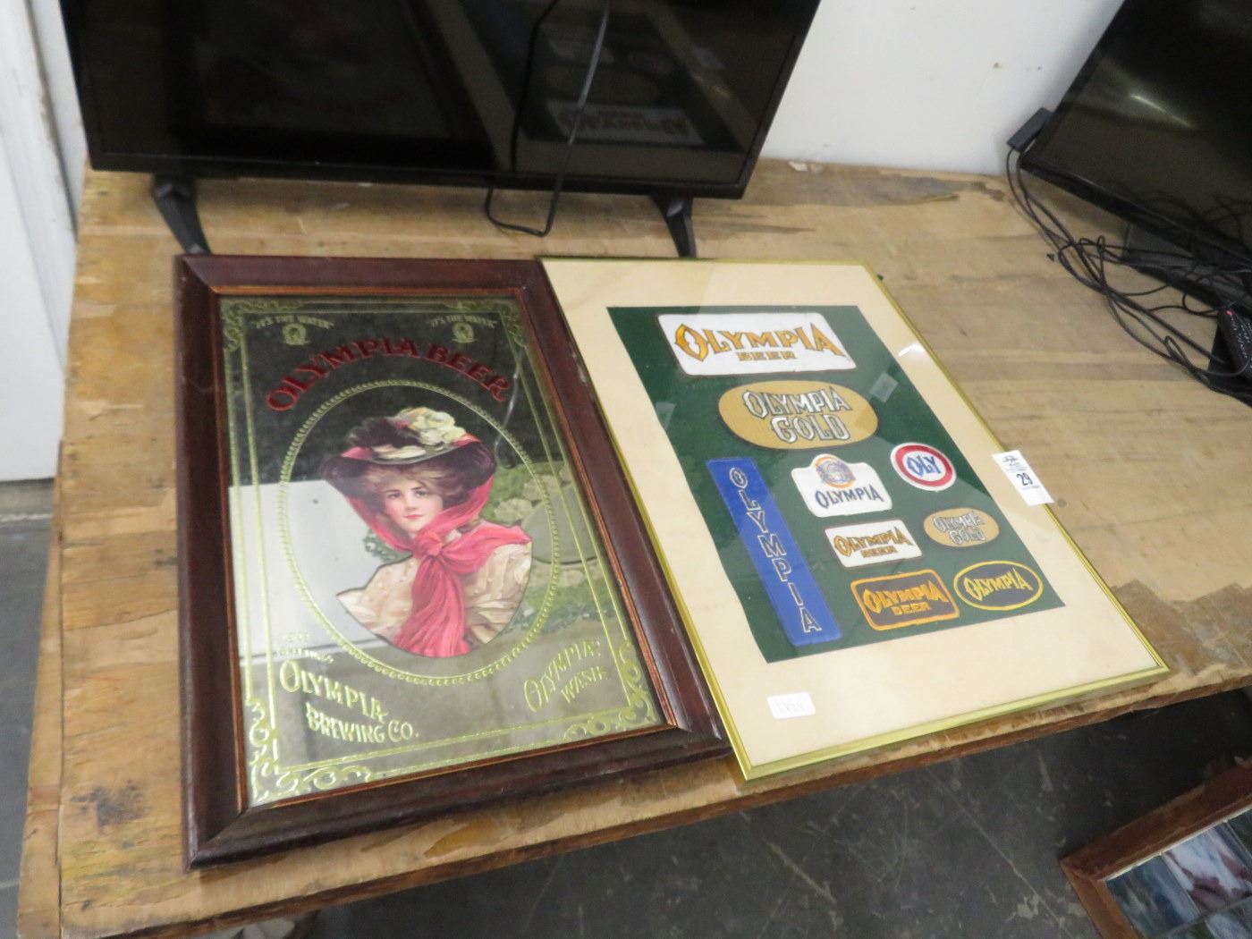 Framed Olympia Beer Mirror and Patches (2) - No Shipping