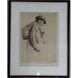 Framed etching "Le Marchand d Habits", original etching (artist's proof) signed and dated on plate, and pencil signed (L.R.) Wm. Averbach-Levy, image measures approx. 10" x 14", well listed
